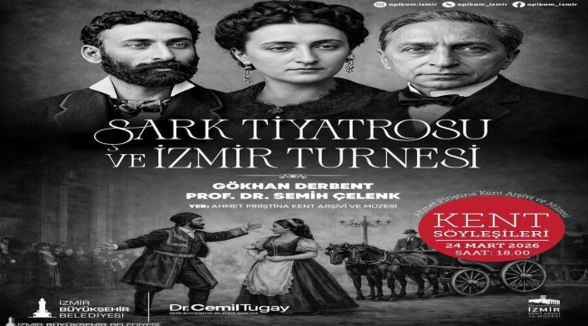 İzmir Büyükşehir Belediyesi Ahmet Piriştina Kent Arşivi ve Müzesi’nin (APİKAM) Kent Söyleşileri dizisi, 24 Mart’ta düzenlenecek “Şark Tiyatrosu ve İzmir Turnesi” oturumuyla devam ediyor. Prof. Dr. Semih Çelenk ve Gökhan Derbent’in katılacağı söyleşide, Tanzimat sonrası Osmanlı’da modern tiyatronun doğuşu ve Şark Tiyatrosu’nun İzmir’e uzanan serüveni ele alınacak.