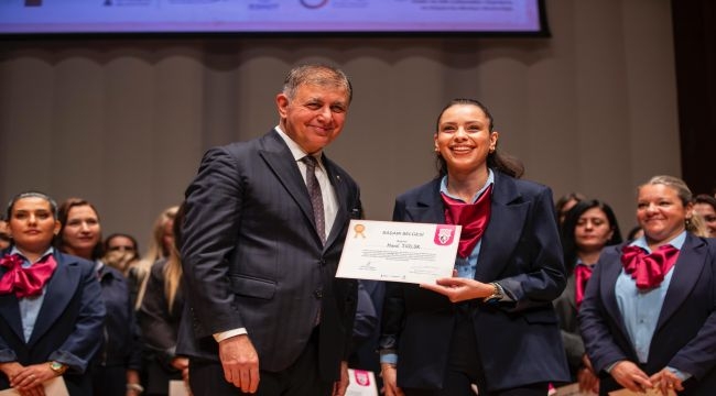 Kadın şoförleri her gördüğünde mutlu olduğunu ifade ederek konuşmasına başlayan İzmir Büyükşehir Belediye Başkanı Dr. Cemil Tugay, “Bu bir kapanış değil bizim için önemli bir dönüşüm sürecinin kutlamasıdır. Kadınların iş yaşamında eşit olması mücadelesinin sonuna gelmedik. Bunun başlarındayız henüz” dedi. Tugay, “Göreve geldiğimizde, İzmir’de kadın toplu ulaşım şoförlerinin sayısını artıracağımızı söylemiştik. Bugün o sözü bir ölçüde yerine getirmenin gururunu yaşıyoruz. Biz diyoruz ki; kadın üretirse şehir gelişir, görünürse toplumsal adalet güçlenir ve kadın yaşarsa bir toplumda o toplum nefes alır. Bu inancın kökleri, Cumhuriyetimizin kurucusu Gazi Mustafa Kemal Atatürk’ün vizyonuna dayanıyor” dedi.