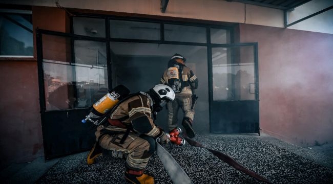 İzmir Büyükşehir Belediyesi İtfaiye Dairesi Başkanlığı ekipleri tarafından Buca’da bulunan Rüştü Ünsal Polis Meslek Yüksekokulu’nda yangın tatbikatı gerçekleştirildi. Tatbikat senaryosuna göre, 4 katlı binanın zemin katında yer alan bir derslikte elektrik hatlarından kaynaklanan bir yangın çıktı. Dumanların hızla binayı sarması üzerine vakit kaybetmeden 112 Acil Çağrı Merkezi’ne haber verildi. İhbar üzerine kısa sürede olay yerine ulaşan itfaiye ekipleri, yangına hızla müdahale ederek alevleri kontrol altına almayı başardı.