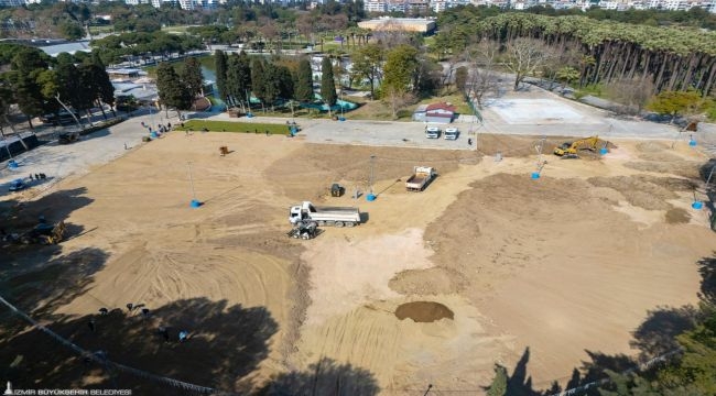 İzmir Büyükşehir Belediye Başkanı Dr. Cemil Tugay’ın Kültürpark’ta başlattığı dönüşüm çalışmaları tüm hızıyla sürüyor. Kültürel mirası, zengin yeşil dokusu, sosyal alanları ve Yeşil Bayrak ödüllü kimliğiyle öne çıkan Kültürpark’ta yürütülen gençleştirme çalışmaları kapsamında eski lunapark alanı da yeniden düzenleniyor. Eski lunapark arazisindeki beton zemin sökülerek yeşil bir etkinlik alanına dönüştürülecek.